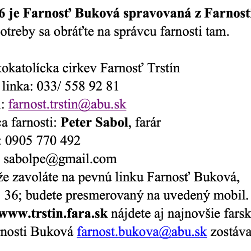 farár v Prievaloch, excurrendo spravoval Bukovú